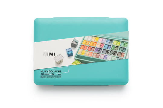 HIMI Twin Cup Gouache Set 48 Paint Colours, Green Case, Add Water To Reactivate, Smooth, Rich Colours, Gift, Artist Art Supplies, Large Scale Art Work To Fine Details, Ready To Use Gouache Colors