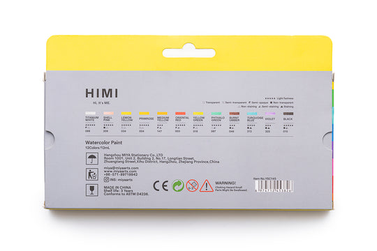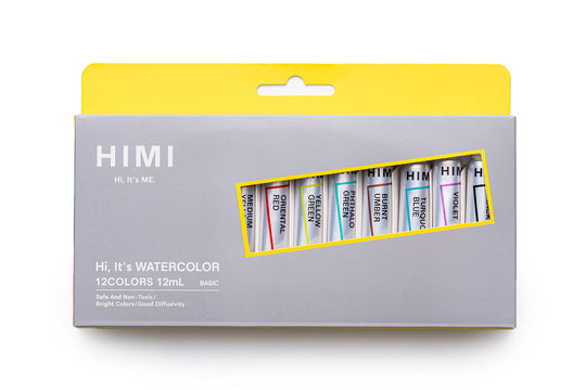 HIMI Watercolour Set 12 Colours 12ml Tubes, Pure Paint Colour, Inspiring Design, Artist Art Supplies, Gift, Watercolor Materials, Lightfast Paints, Vivid Results, High Pigments, Gum Arabic