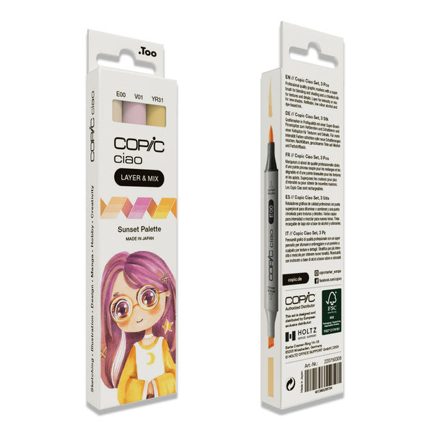 COPIC Ciao Layer & Mix Set Of 3 Pens, Sunset Palette Markers, Art, Craft Colouring, Graphic, Highlighter, Design, Anime Manga