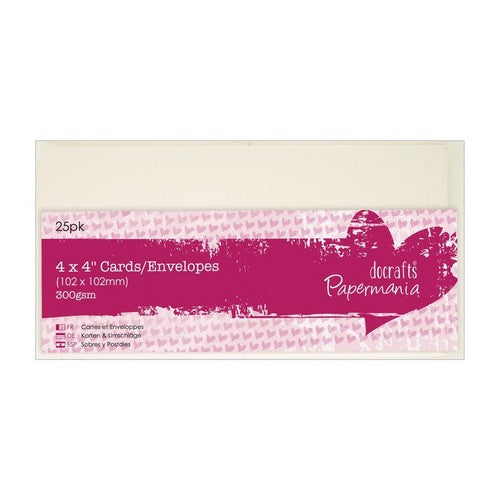 Papermania 4 x 4 Cards/Envelopes (25pk 300gsm) - Cream, Craft Supplies, Card Making, Invitation, Menu Cards, Wedding, Birthday, Party, Christmas