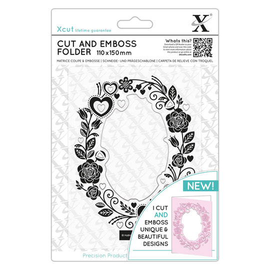 Xcut Cut & Emboss Folder, Rose Border, White, 110 x 150mm, A Stencil that's ideal for Card Making and a Wedding Card, Decorate your Photo Album and Photo Paper with a DIY Project