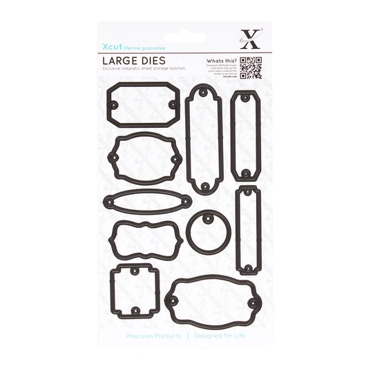 Xcut Decorative Dies, Tags & Bookplates, Silver, Set of 10, Ideal to use on a Birthday Card and Birthday Decoration, Perfect Card Making Supplies for your Craft Sets & Die Cutting Machine