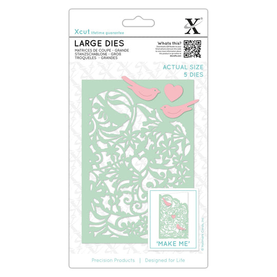 Xcut Large Dies, Love Birds, Silver, Set of 5, Ideal to use on a Birthday Card and Birthday Decoration, Perfect Card Making Supplies for your Craft Sets & Die Cutting Machine