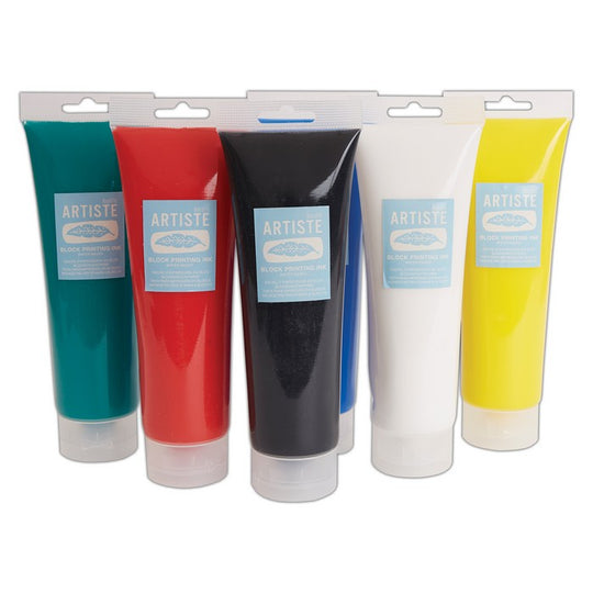 Artiste Water-Soluble Block Printing Ink, Pack of 6 Colours, 300ml, for Block Printing, Lino Printing, Linoleum, Screen Printing, for Artists Kit, Printmaking Art Paint Ink Supplies, Water-Based