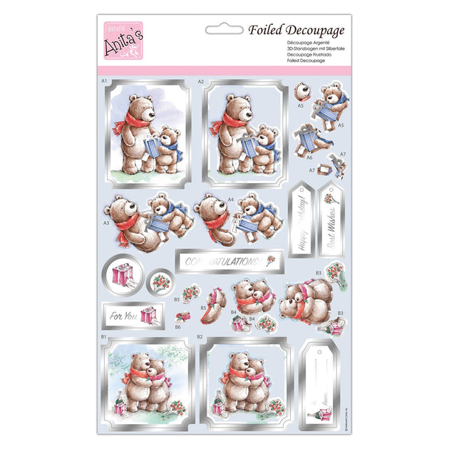 Anita's A4 Bear Delights Foiled Decoupage Sheet, Accessories Supplies For Craft, Paper Craft, Scrapbooking, Card Making, Origami, Ideal for Adult Craft, Adds Textured Pattern To Craft Projects