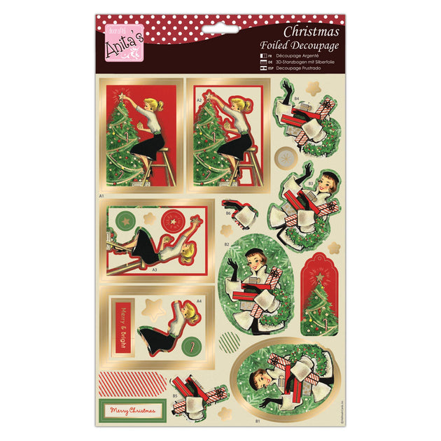 Anita's A4 Retro Christmas Decoupage Sheet, Accessories Supplies For Craft, Paper Craft, Scrapbooking, Card Making, Origami, Ideal for Adult Craft, Adds Textured Pattern To Craft Projects