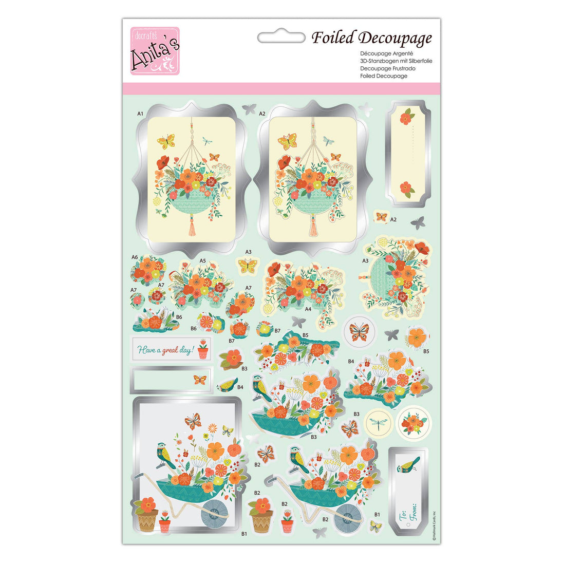 We are delighted to bring you these stunning and stylish foiled decoupage sheets from Anita’s. This delightful Spring Has Sprung design features beautiful flower bouquets along with detailed butterflies and birds with silver foil detailing. Sure, to help any handmade card, papercraft or scrapbook stand out. Perfect for various occasions and for offering well-wishes, this intricately detailed decoupage sheet is sure to inspire creativity. This pack contains 1x Sheet measuring at 297 x 210mm