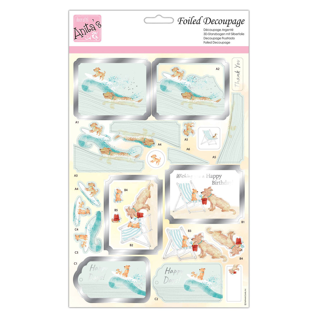 Anita's A4 Dogs At The Seaside, Foiled Decoupage Sheet, Accessories Supplies For Craft, Paper Craft, Scrapbooking, Card Making, Origami, Ideal for Adult Craft, Adds Textured Pattern To Craft Projects