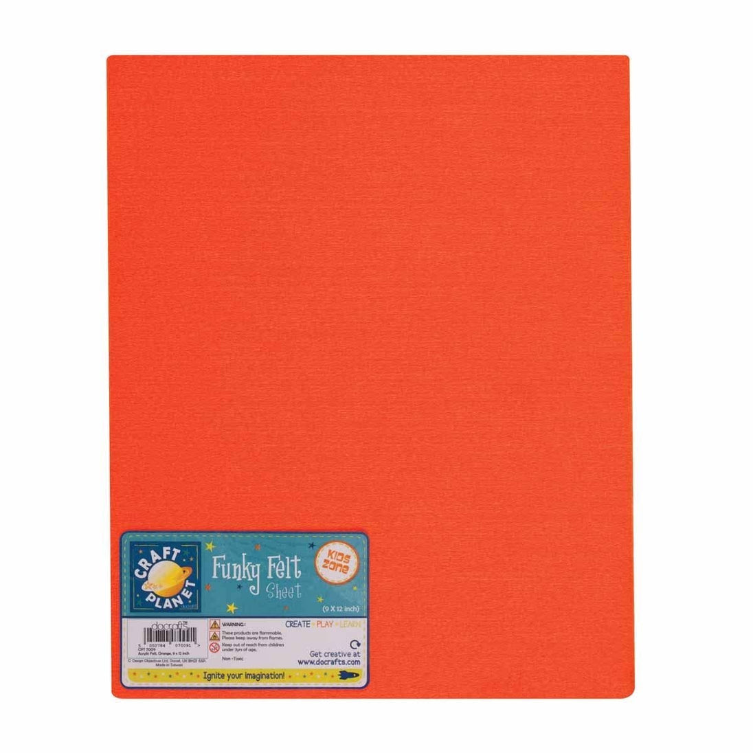 Craft Planet Acrylic Felt Sheet, Orange, 9 x 12, Art & Craft Fun For Kids, Crafting Supplies, Use In Home Or School, Make Finger Puppets, Soft Toys, Fashion Accessories, Decorations And Embellishments