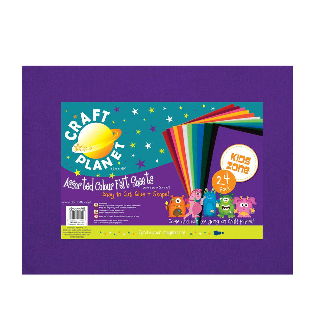 Craft Planet Acrylic Felt Sheet, Multicoloured, 9 x 12, Art & Craft Fun For Kids, Crafting Supplies, Use In Home Or School, Make Finger Puppets, Soft Toys, Fashion Accessories