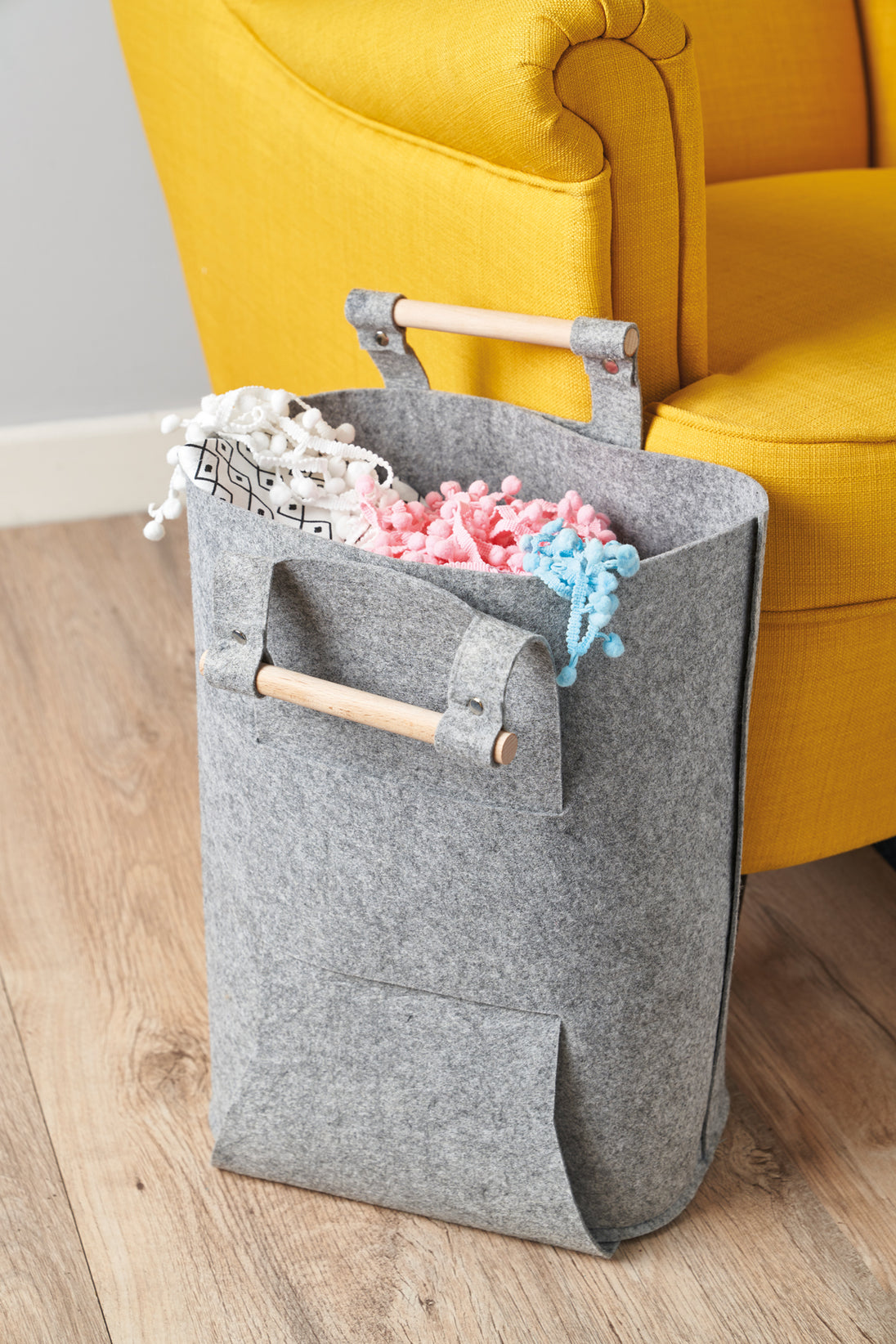 A mult-purpose Felt Craft Bag for storing and transporting all of your crafting items. Features wooden handles for extra strength and durability