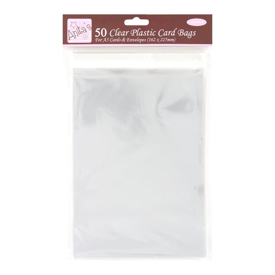 Anita's Card Bag, 162 x 225mm, Clear, Pack Of 50, Plastic Bag, Card Protection Bag, For Home, Art, Craft, Cardmaking