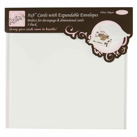 Anita's 8x8 expandable card and postal wallet envelopes are the perfect supplies for all your card making projects. Pack of 3 280gsm white card and envelopes are perfect for the postage of card gifts, vouchers, money,...Regular price £4.00 -