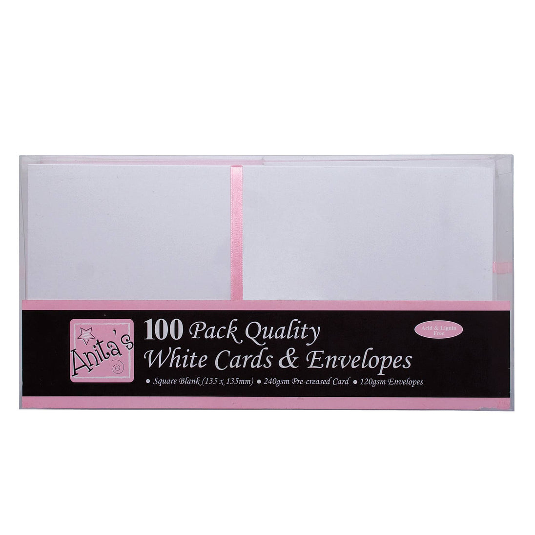 Anita's Square Plain, Blank Cards & Envelopes, 135x 135mm, White, Pack Of 100, For Home, Wedding, Birthday, Christmas, Thank You, Art & Craft, Scrapbooking Supplies, Baby Shower, Card Making