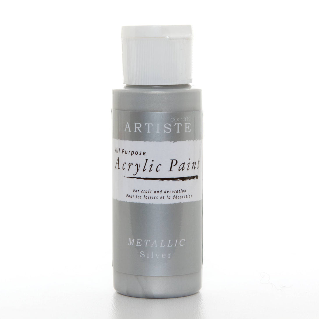 Artiste Acrylic Paint 59ml 2Oz Metallic Silver, Quick-Drying Professional Art, Craft And Hobby Artists Paint, Vibrant Colour, Water-Based Paints Cover All Surfaces With Ease, Ideal For Travel Artists
