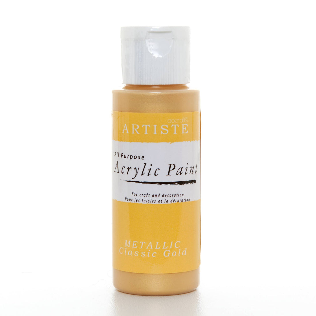 Artiste Acrylic Paint 59ml 2Oz Metallic Classic Gold, Quick-Drying Professional Art, Craft And Hobby Artists Paint, Vibrant Colour, Water-Based Paints Cover All Surfaces With Ease, Ideal For Travel Artists