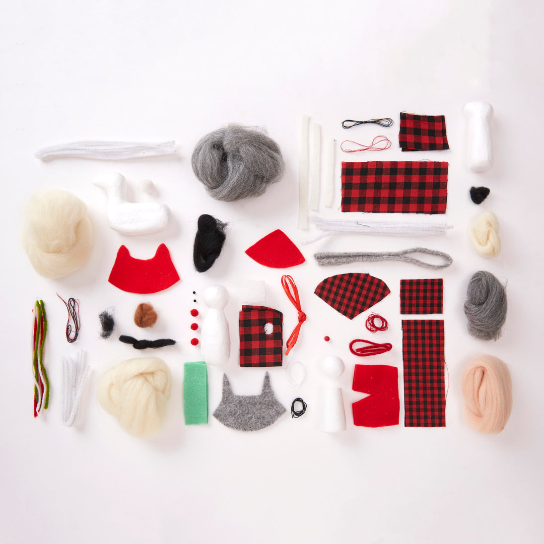 CONTENTS Polystyrene bases, needle felting wool, felt needle, pre-cut felt pieces, accessories and a handy set of instructions. A perfect DIY craft kit for beginners, all supplies included.