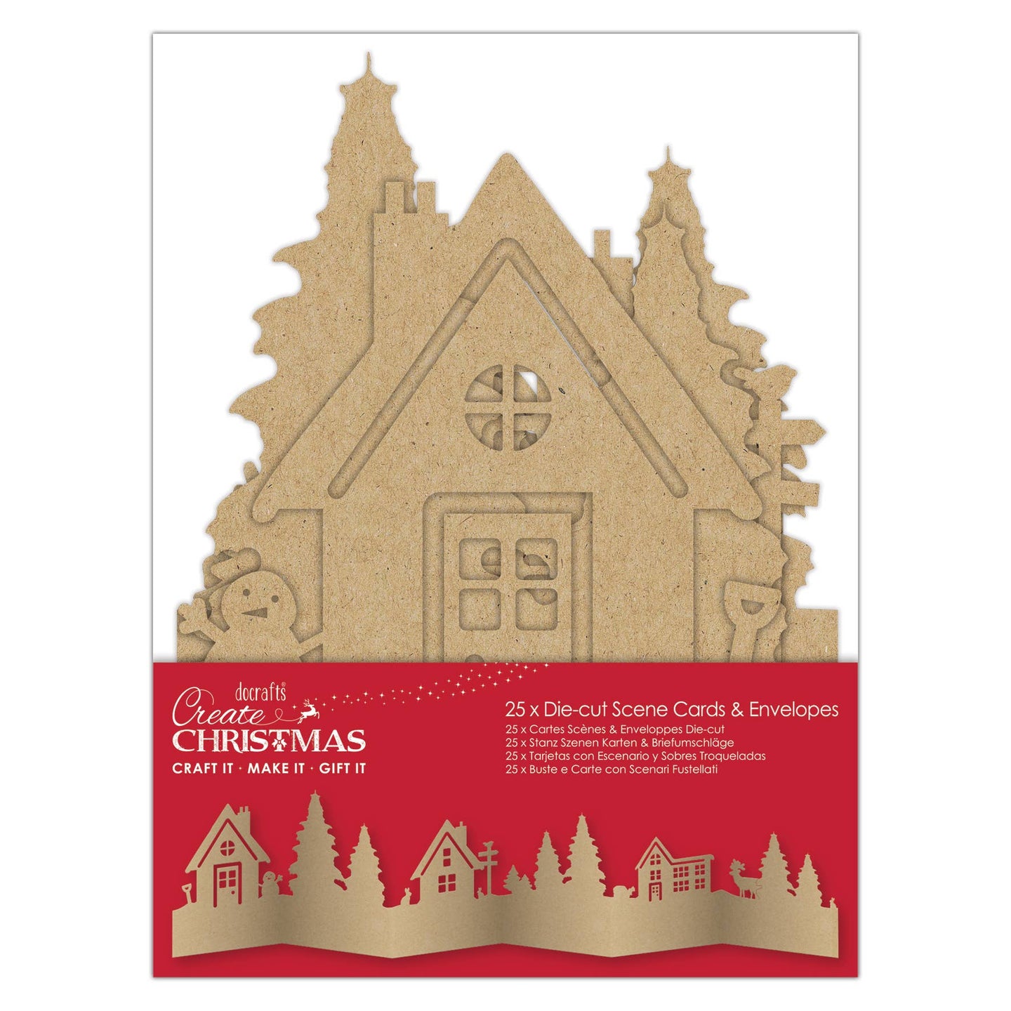 Create Christmas Die-cut Scene Card & Envelope, Brown Kraft, Pack of 25, Card Making Set for Birthday Card, Thank you Cards, Valentines, Baby Shower, Wedding Card and more! Ideal for Home Crafting