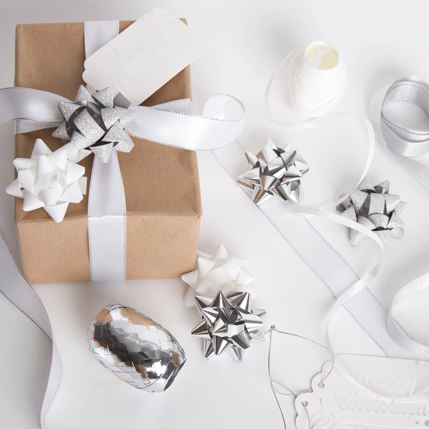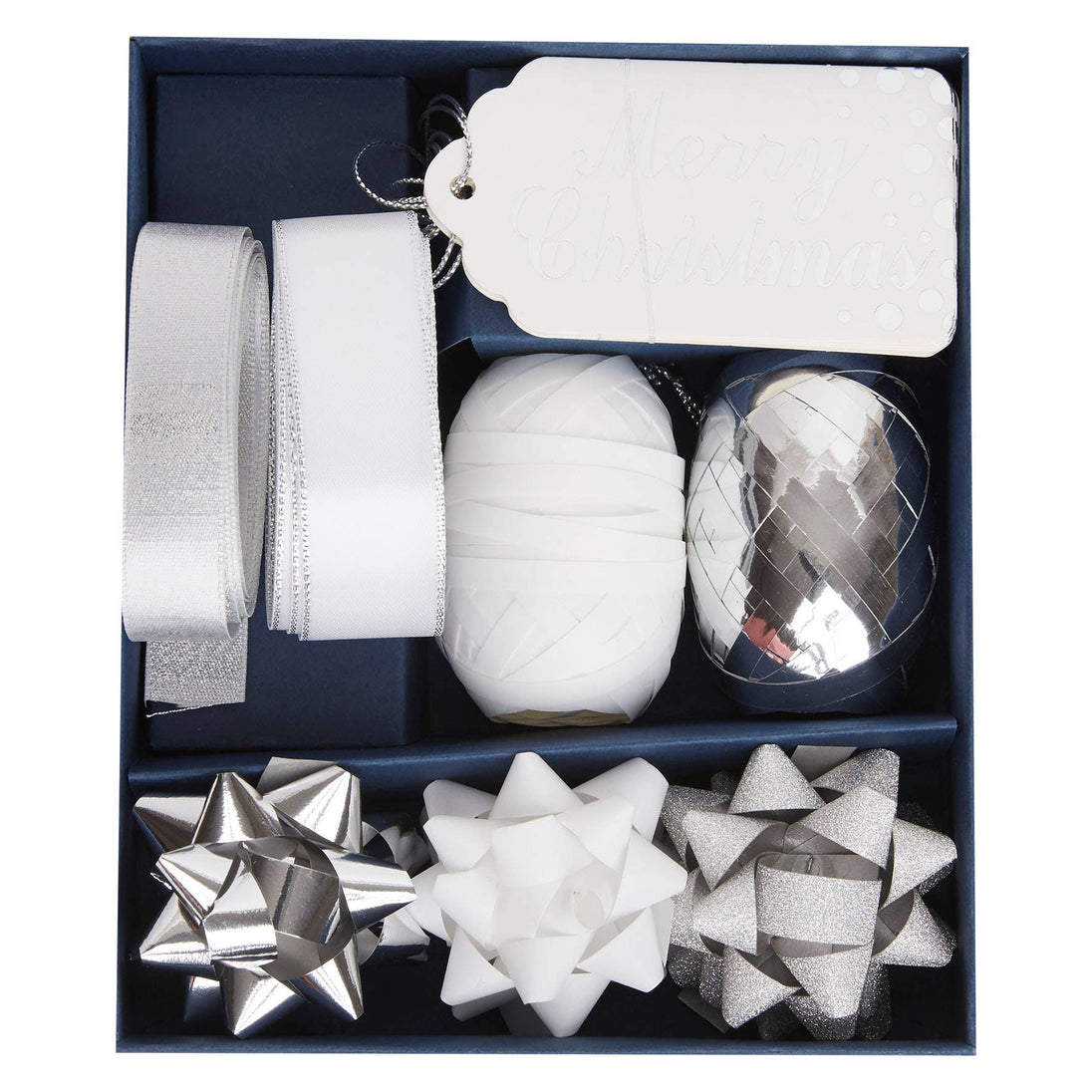 Create Christmas Gift Bows Kit Silver & White, Embellish Gift Wrapping With A Bow, Ribbon, And Curling Ribbon, Finish Off With A Bow For Your Hamper Box with Cellophane or Wicker Basket Gift