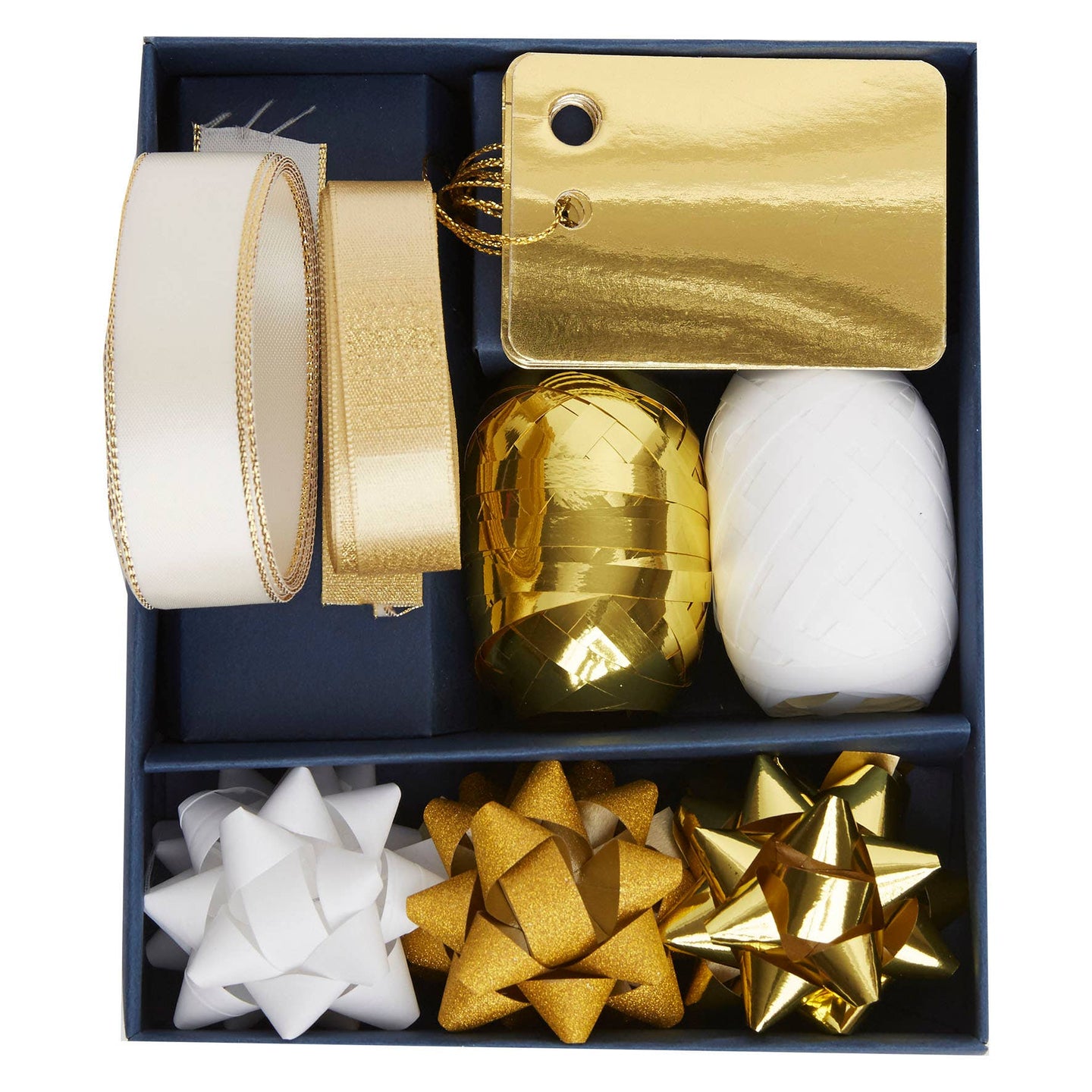CONTENTS Includes 16 pieces of gift tags, a variety of bows, assorted ribbons, and curling ribbons, the essential set of supplies for gift wrapping. Perfect for creating a hamper, festive basket, gift bag and many more!