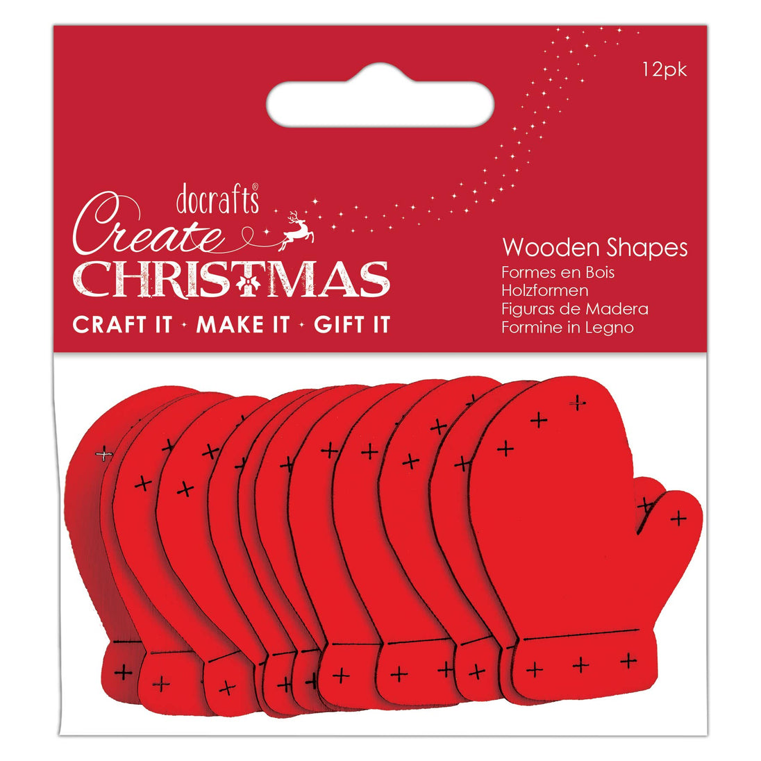 Create Christmas Wooden Shapes, Mittens, Red, Pack of 12, Suitable for Home, Wood Paint, Wooden Toys and Card Craft, Ideal for Christmas Decorations and Card Making Supplies