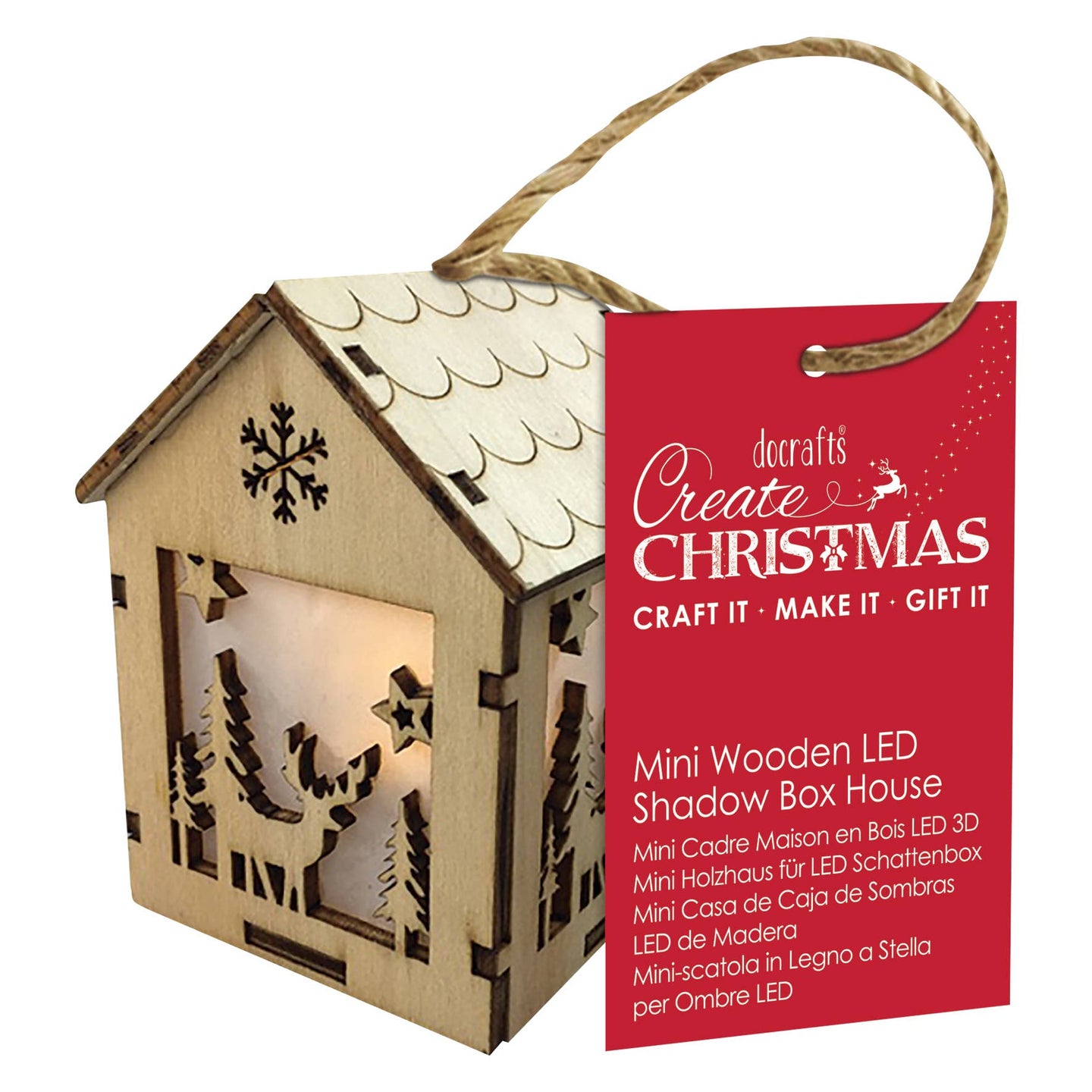 Create Christmas Mini Wooden LED Shadow Box House Winter Stag, Brown, Single Pack, Craft Supplies for Home Christmas Craft and Craft Projects, Ideal for Festive Crafts for Kids and Adults