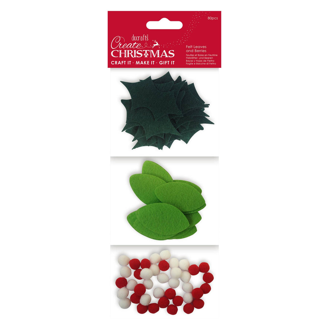 Create Christmas Felt Leaves and Berries, Multicoloured, Set of 80, Craft Supplies for Home Christmas Craft and Craft Projects, Ideal for Festive Crafts for Kids and Adults