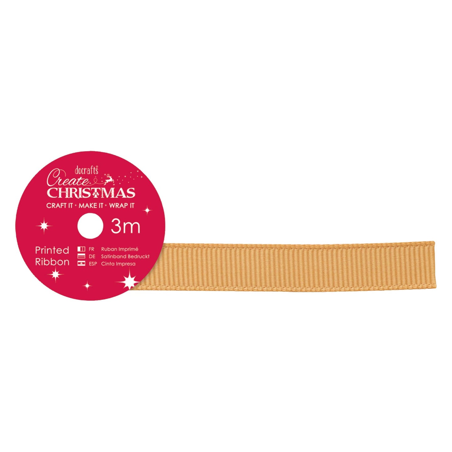 Create Christmas Printed Ribbon, Grosgrain, Gold, 3m, The Ideal Christmas Ribbon for Card Making, Scrapbook Supplies, Christmas Tree Decorations and Festive Bows
