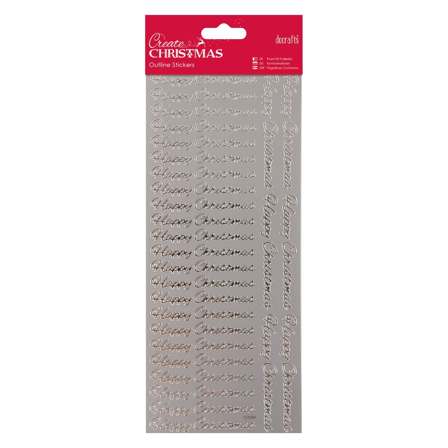 Create Christmas Outline Stickers Happy Christmas (Repeated), Silver, Single Sheet, Christmas Stickers for Children and Adults, Ideal Labels for Card Making, Craft Projects and Scrapbook Stickers