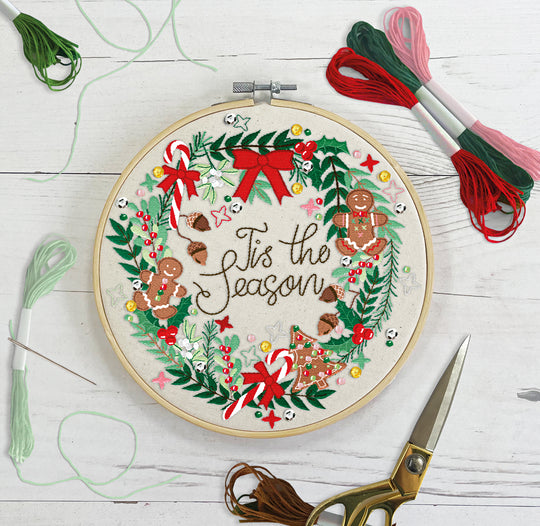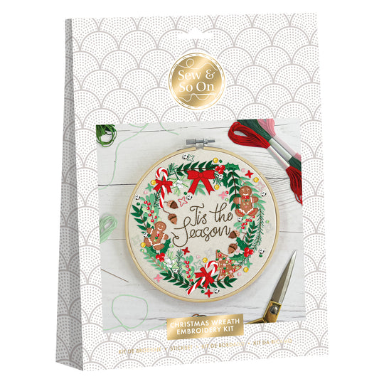 Sew & So On Embroidery Sewing Craft Kit Christmas Wreath, Includes All Craft Accessories Needed Ideal DIY Adult And Older Kids Craft Kits, Makes A Great Craft Art Gift, Use For Christmas Home Decor