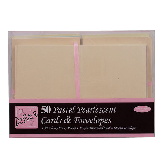 A card pack of 50 x A6 (105x149mm) Cards and Envelopes from Anitas. Quality pastel pearlescent shimmering cards and co-ordinating 120gsm envelopes. Acid and Lignin Free. A must have for any card maker!Regular price £14.50 -