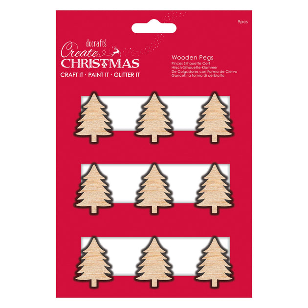 Create Christmas Christmas Tree Silhouette Pegs, Brown, Pack of 9, Craft Supplies for Home Christmas Craft and Craft Projects, Ideal for Festive Crafts for Kids and Adults