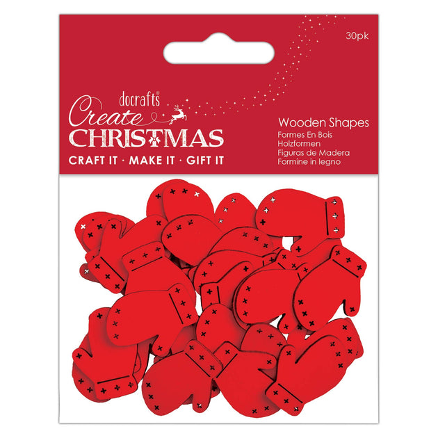 Create Christmas Wooden Shapes, Mini Mittens, Red, Pack of 30, Suitable for Home, Wood Paint, Wooden Toys and Card Craft, Ideal for Christmas Decorations and Card Making Supplies