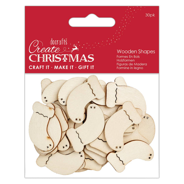 Create Christmas Wooden Shapes, Mini Stockings, Brown, Pack of 30, Suitable for Home, Wood Paint, Wooden Toys and Card Craft, Ideal for Christmas Decorations and Card Making Supplies