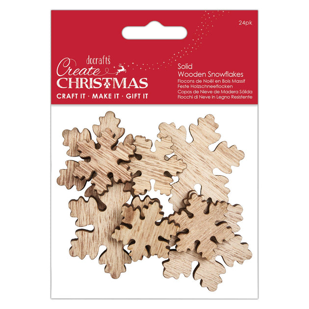 Create Christmas Solid Wooden Snowflakes, Brown, Pack of 24, Suitable for Home, Wood Paint, Wooden Toys and Card Craft, Ideal for Christmas Decorations and Card Making Supplies