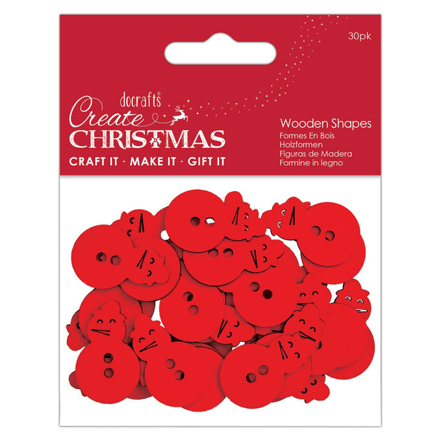Create Christmas Wooden Shapes, Mini Snowman, Red, Pack of 30, Suitable for Home, Wood Paint, Wooden Toys and Card Craft, Ideal for Christmas Decorations and Card Making Supplies