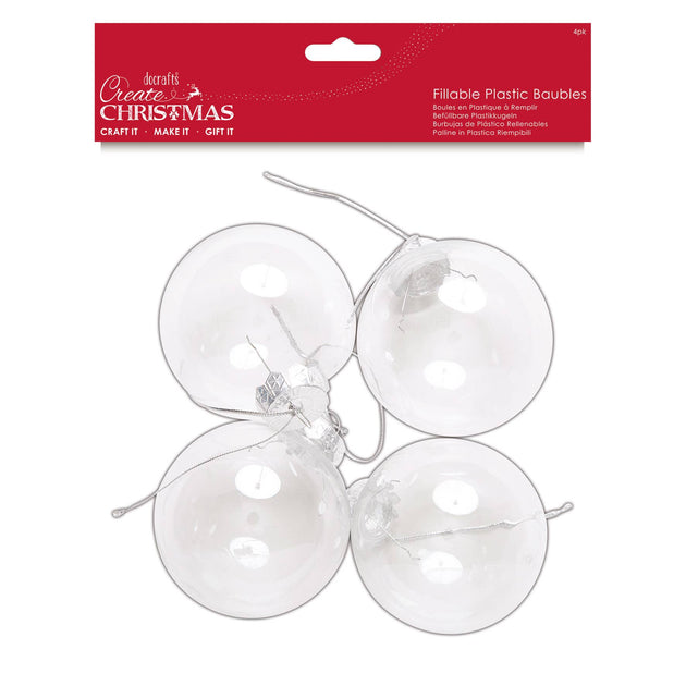 Create Christmas Plastic Fillable Baubles, Pack of 4, Clear, 80mm, Fill and Paint your Own Bauble for Christmas, Make your Own Christmas Home Decoration for the Christmas Tree