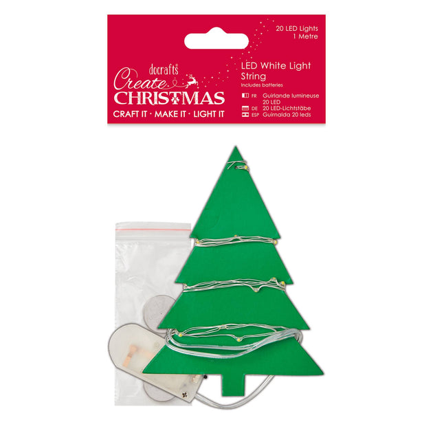 Create Christmas 20 LED Light String, White, 1m, Craft Supplies for Home Christmas Craft and Craft Projects, Ideal for Festive Crafts for Kids and Adults