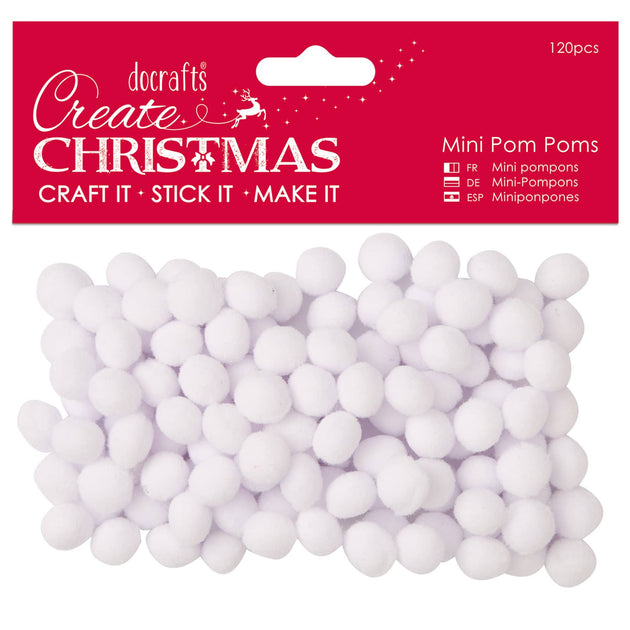 Create Christmas Mini Pom Poms, White, Pack of 120, Craft Supplies for Home Christmas Craft and Craft Projects, Ideal for Festive Crafts for Kids and Adults