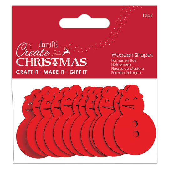 Create Christmas Wooden Shapes, Snowman, Red, Pack of 12, Suitable for Home, Wood Paint, Wooden Toys and Card Craft, Ideal for Christmas Decorations and Card Making Supplies