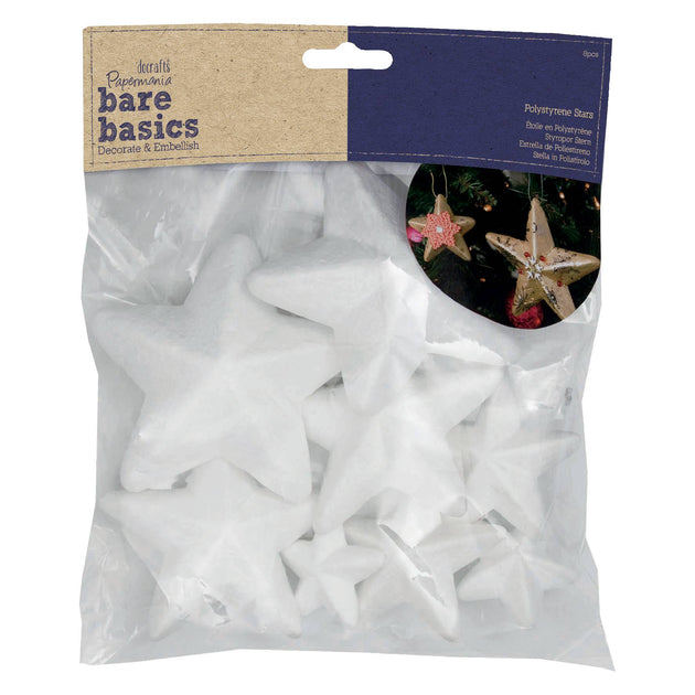 Papermania Polystyrene Stars, White, Pack of 8, Polystyrene Crafts for Home, School, and Christmas Projects, Craft Supplies for Kids and Adults, Decorate with Paper