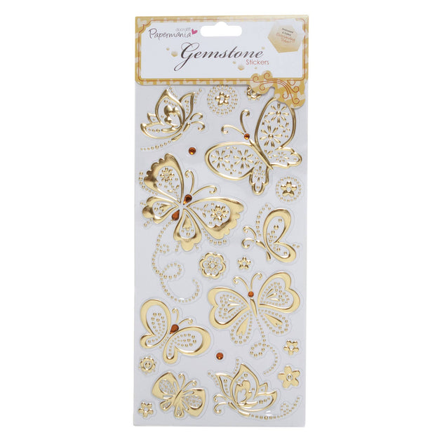 Papermania Gemstone Stickers, Butterflies, Gold, Single Sheet, Stickers for Children and Adults, Ideal Labels for Card Making and Craft Projects, Kids Sticker Book and Scrapbook Stickers