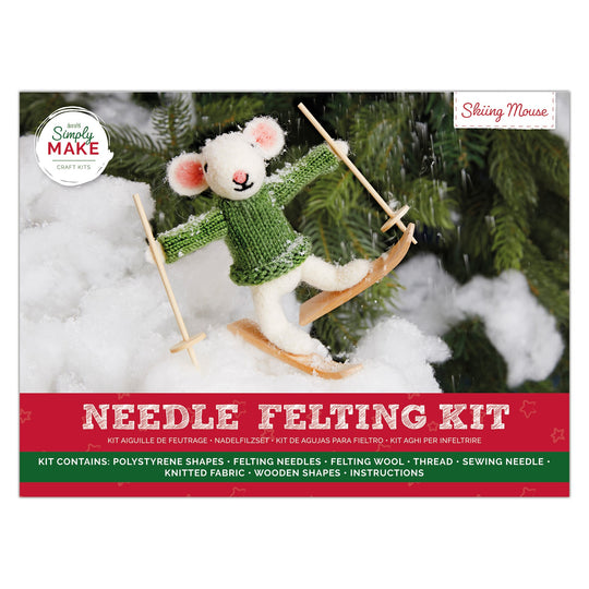 Simply Make Needle Felting Kit, Skiing Mouse, Multicoloured, Single Craft Kit, Needle Felting Kit with Felting Needles and Felting Wool, Ideal Needle Felting Kits for Beginners, Fun DIY Craft Kit