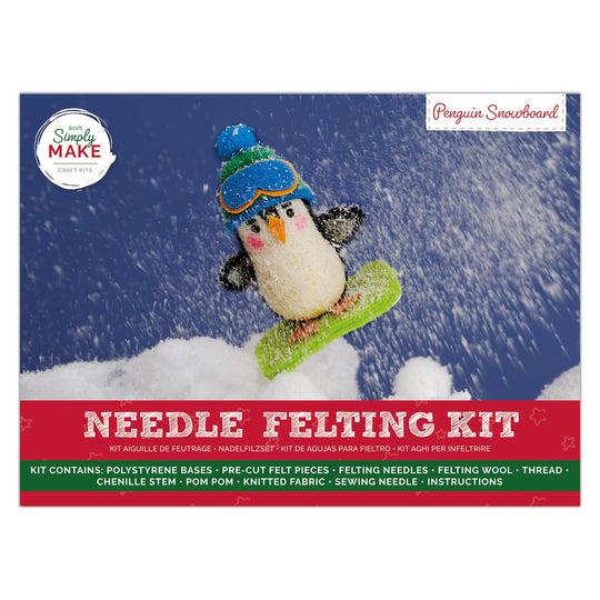 Simply Make Needle Felting Kit, Snowboard Penguin, Multicoloured, Single Craft Kit, Needle Felting Kit with Felting Needles and Felting Wool, Ideal Needle Felting Kits for Beginners, Fun DIY Craft Kit