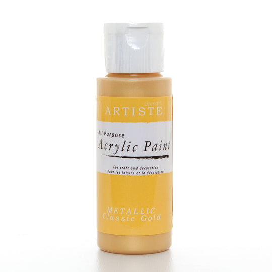 Vendor: Artiste Artiste Acrylic Paint 59ml 2Oz Metallic Classic Gold, Quick-Drying Professional Art, Craft And Hobby Artists Paint, Vibrant Colour, Water-Based Paints Cover All Surfaces With Ease, Ideal For Travel Artists BRAND Artiste acrylic paints offer great value for money, fantastic quality and ease of use making them a firm favourite with crafters everywhere! Can be used on any surface including fabric, paper, card, wood, glass, metal,...Regular price £3.85