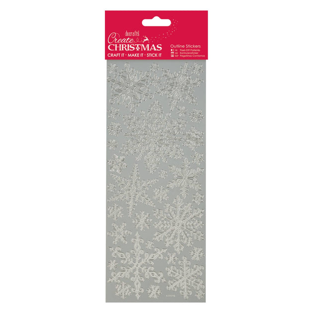 Create Christmas Outline Stickers Snowflakes, Silver, Single Sheet, Christmas Stickers for Children and Adults, Ideal Labels for Card Making, Craft Projects and Scrapbook Stickers
