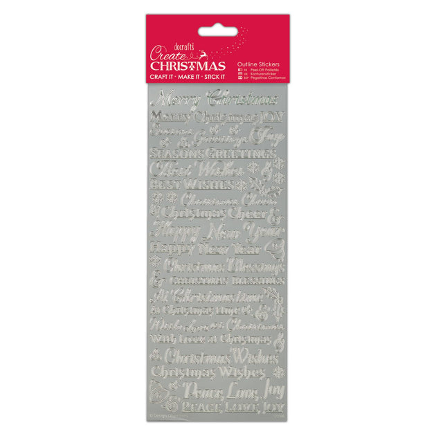 Create Christmas Outline Stickers Traditional Christmas Sentiments, Silver, Single Sheet, Christmas Stickers for Children and Adults, Ideal Labels for Card Making, Craft Projects & Scrapbook Stickers