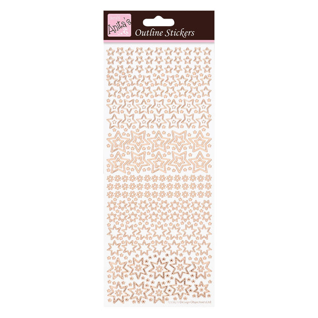 Anita's Outline Stickers, Sparkling Stars, Rose Gold On White, For Scrapbooking, Card Making, Kids Play, Homework, Art, Craft, Embelish, Decorative, Paper, Card, Glass, Metal, Plastic, Foam