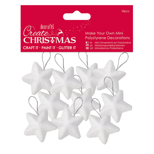 Vendor: Create Christmas Create Christmas Make Your Own Mini Polystyrene Decorations, Stars, Pack of 10, White, 4cm, Polystyrene Crafts for Home, School, and Christmas Projects, Craft Supplies for Kids and Adults IDEAL These polystyrene stars are the perfect base for creating your very own gorgeous, bespoke Christmas decorations. EMBELLISH Decorate and personalise your polystyrene stars with paint for a pop of colour. Add a touch of glitter...Regular price £2.30