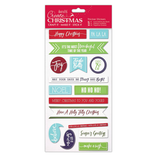 Create Christmas Christmas Thicker Stickers, Christmas Sentiments, Multicoloured, Pack of 16, Stickers for Children and Adults, Ideal Labels for Card Making, Craft Projects and Scrapbook Stickers